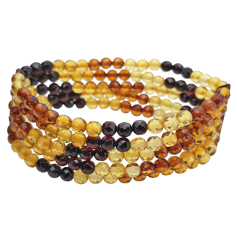 Faceted Multicolor Amber Stretch Bracelet. Round-shaped amber beads are strung on an elastic cord. Baltic amber beaded bracelet.
