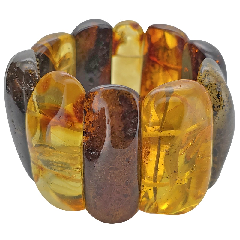 Natural Amber Stretch Bracelet. Multi-color large free-form amber beads are set on elastic cords. Genuine Baltic amber bracelet.