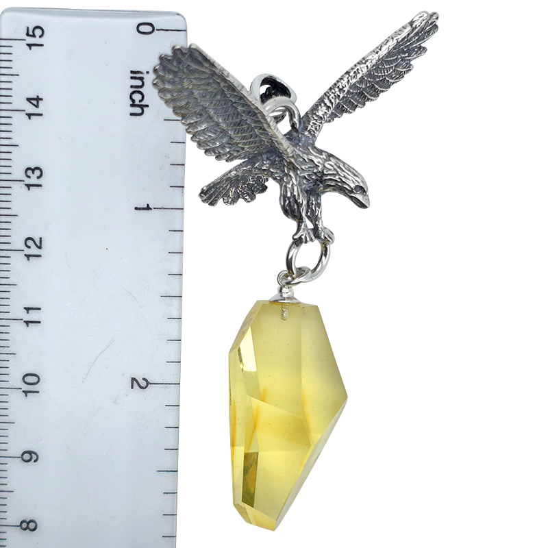 Amber Oxidized Silver Handmade Hawk Pendant. Citrine-color amber stone set on .925 sterling silver. Genuine Baltic amber.
