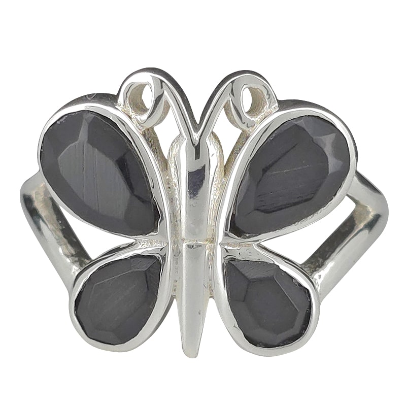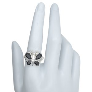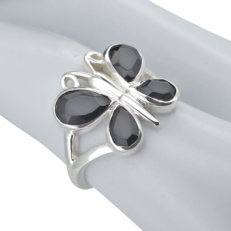Faceted Black Onyx Sterling Silver Butterfly Ring