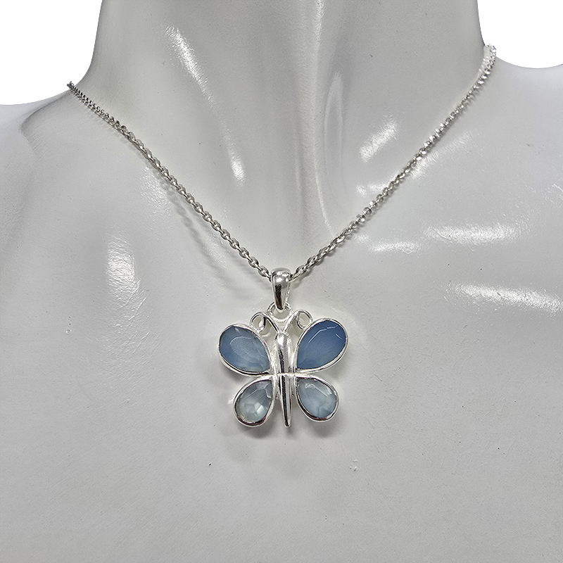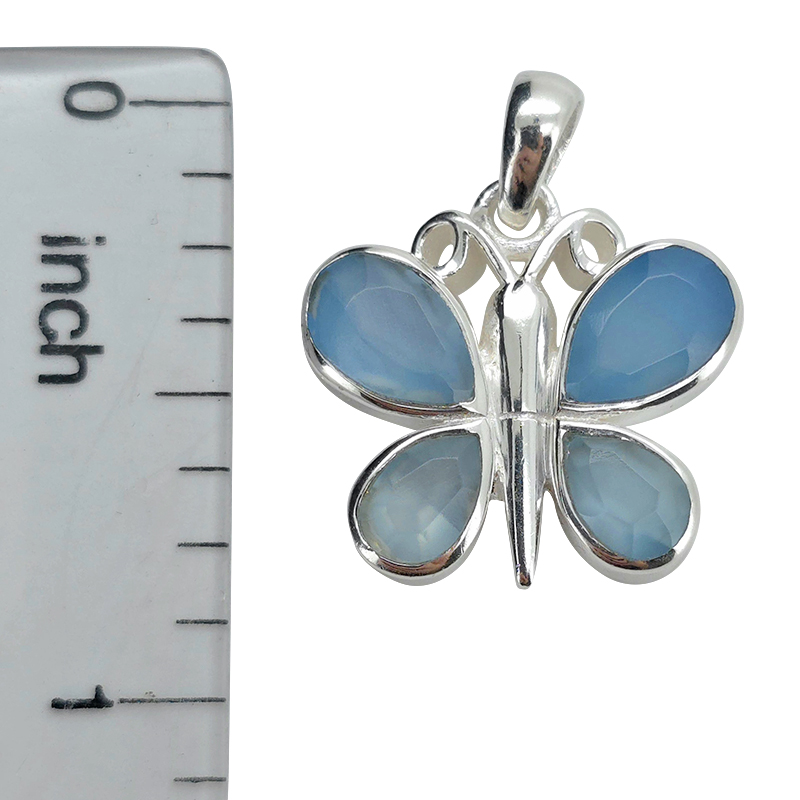 Faceted Blue Chalcedony Sterling Silver Butterfly Pendant