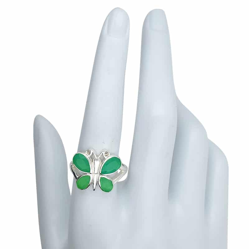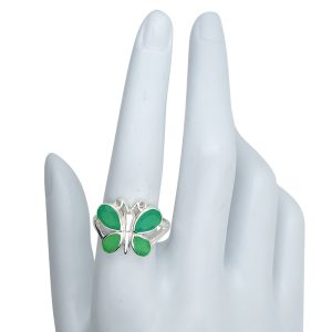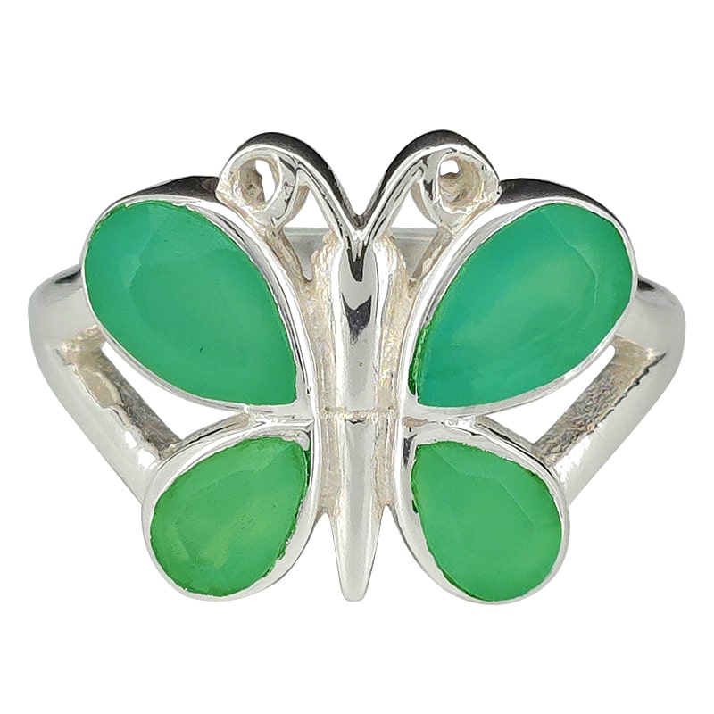 Faceted Green Onyx Sterling Silver Butterfly Ring