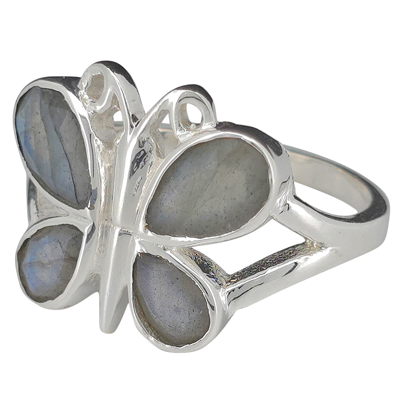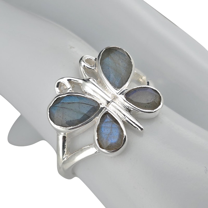 Faceted Labradorite Sterling Silver Butterfly Ring