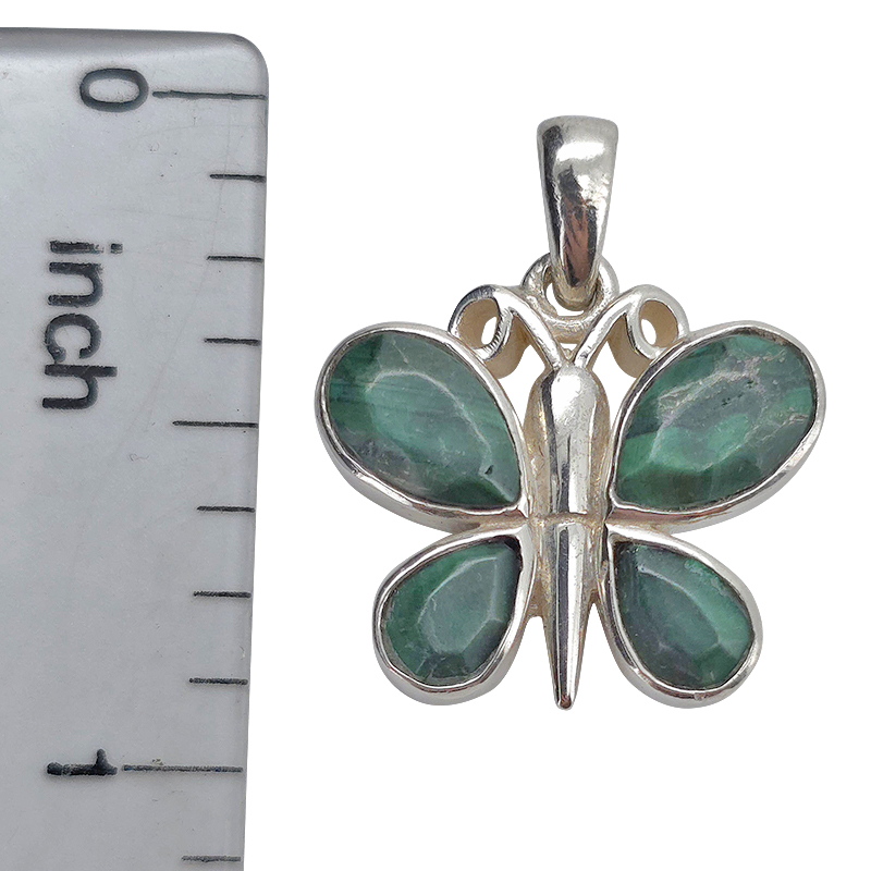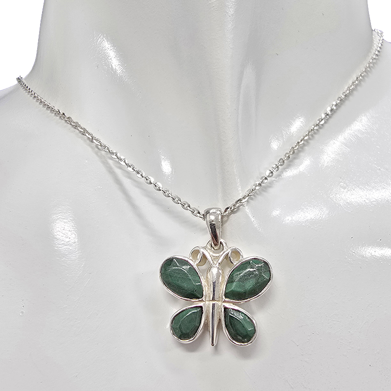 Faceted Malachite Sterling Silver Butterfly Pendant