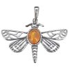 Amber Sterling Silver Dragonfly Earrings On Hooks