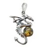 Cognac Amber Sterling Silver Dragon Pendant. Cognac round-shaped amber stone is set in .925 sterling silver. Genuine Baltic amber.