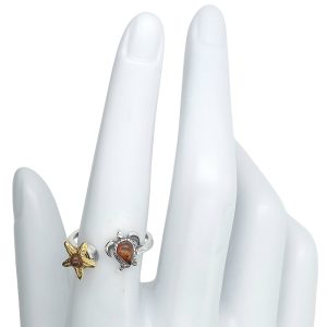 Cognac Amber Starfish And Sea Turtle Adjustable Spinner Ring