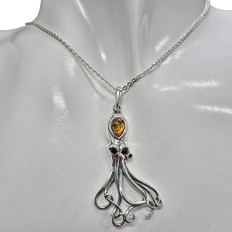 Tags: 925 silver pendant, 925 Sterling silver, Amber jewelry, Amber Octopus, amber octopus pendant, Baltic amber, Octopus, silver jewelry, summer trends