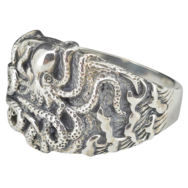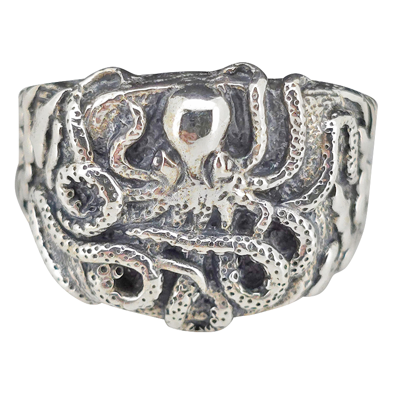 Octopus Sterling Silver Ring. This ring features an octopus design crafted from .925 sterling silver. it’s a perfect piece for ocean lovers.