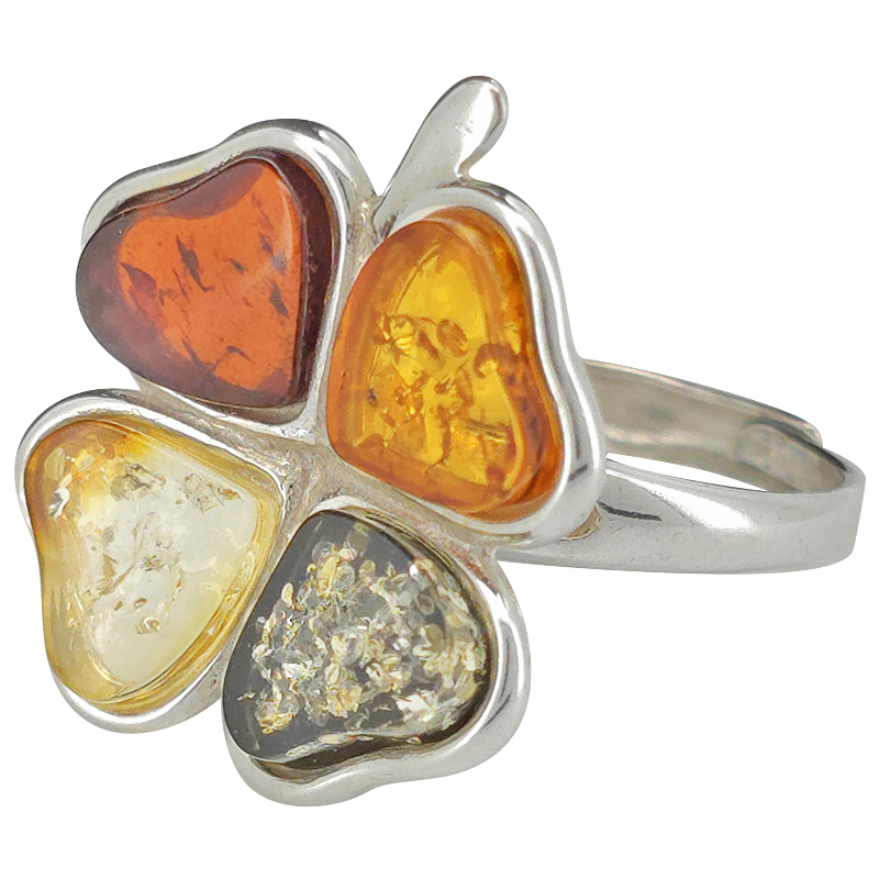 Multi Color Amber Sterling Silver Clover Adjustable Ring