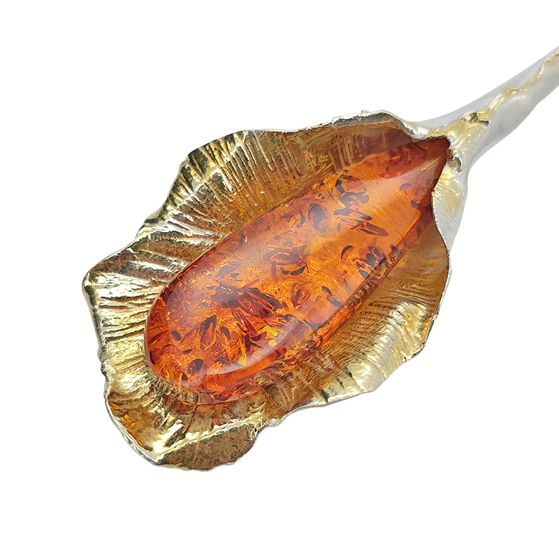 Cognac Amber Gold Plated Silver Handmade Pendant