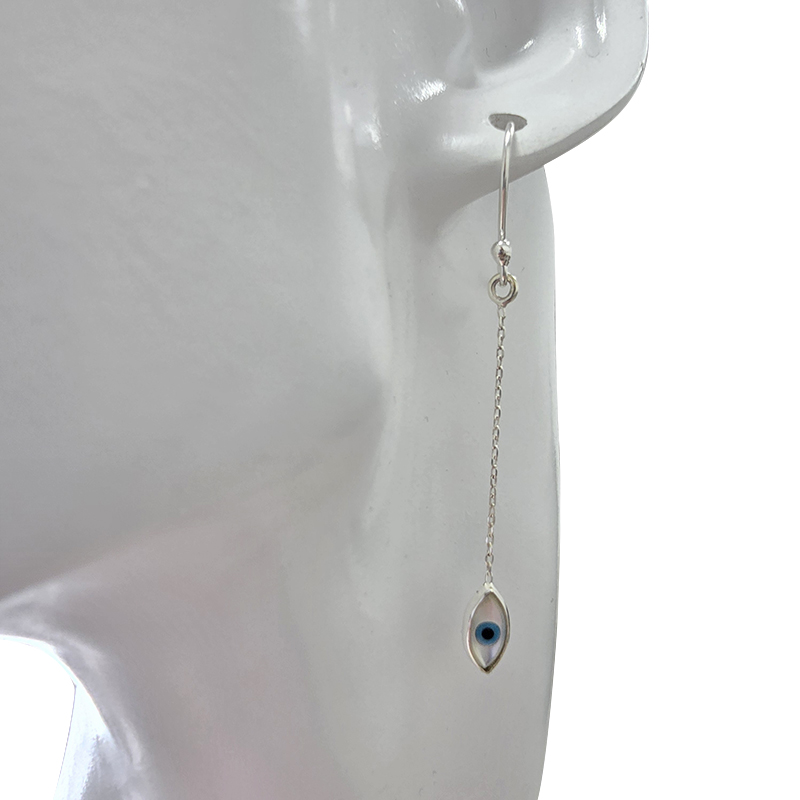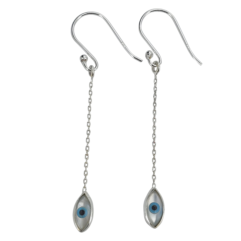 Mother Of Pearl Evil Eye Protection Sterling Silver Earrings On Hooks