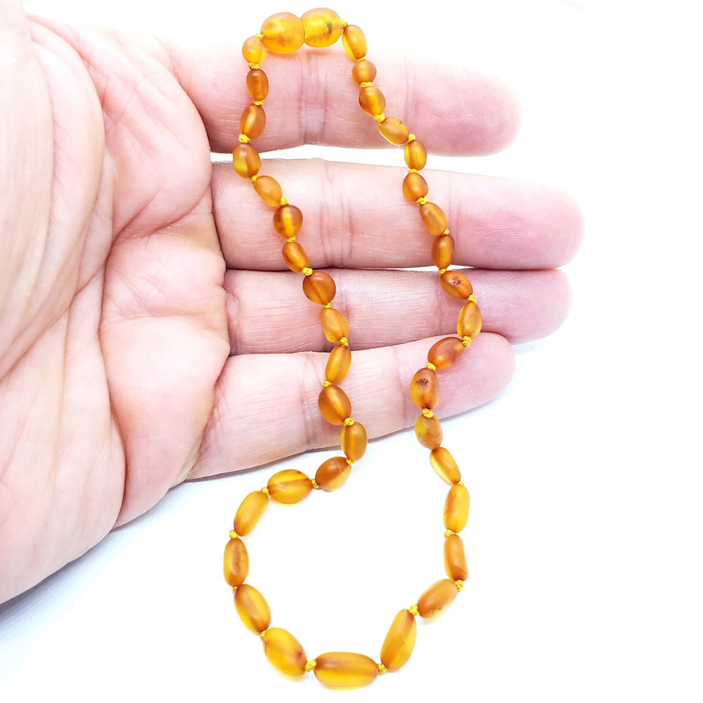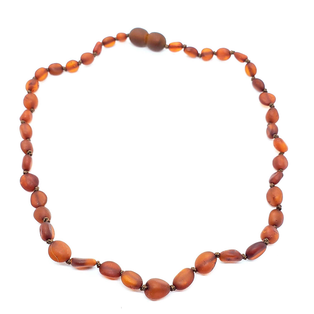 Matte Finish/Raw Cognac Amber Baby/Teething Necklace, SCREW CLASP 13″