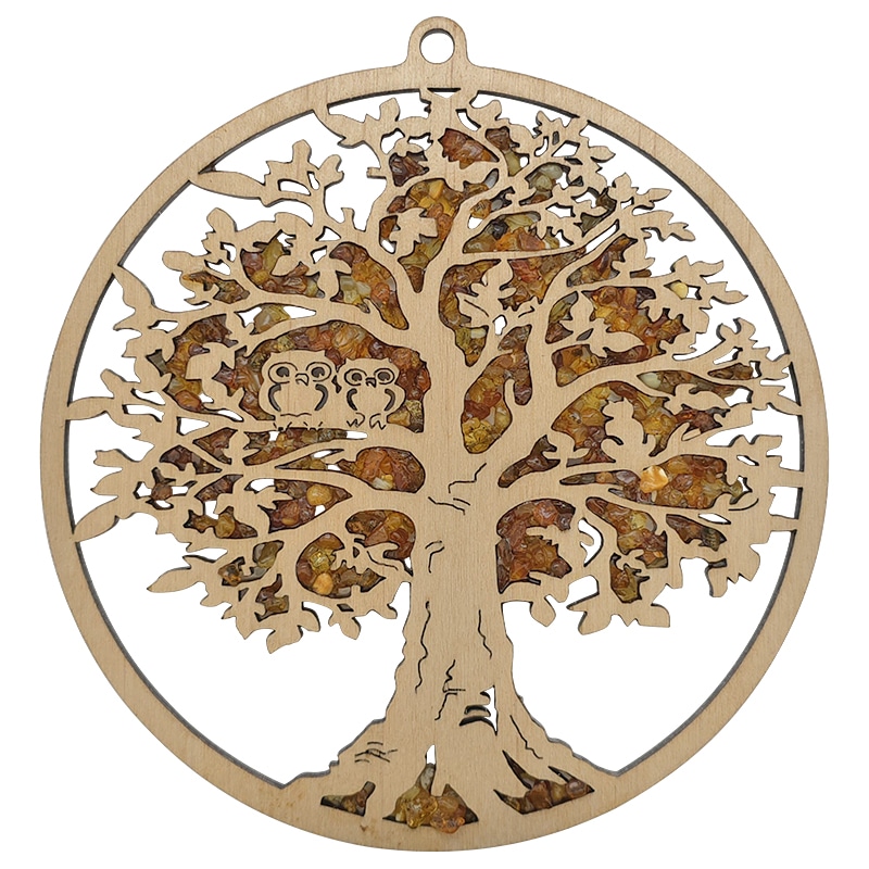 Tree Amber Suncatcher And Magnet. Can be hung on a window or stocked on a fridge with built-in magnets. Wooden frame and details. The tree motif, often symbolizing growth, strength, and connection to nature, infuses the piece with a sense of tranquility and harmony.