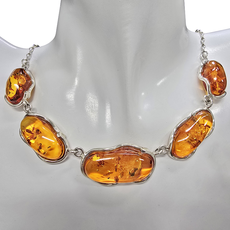 Cognac Color Amber Sterling Silver Handmade Necklace