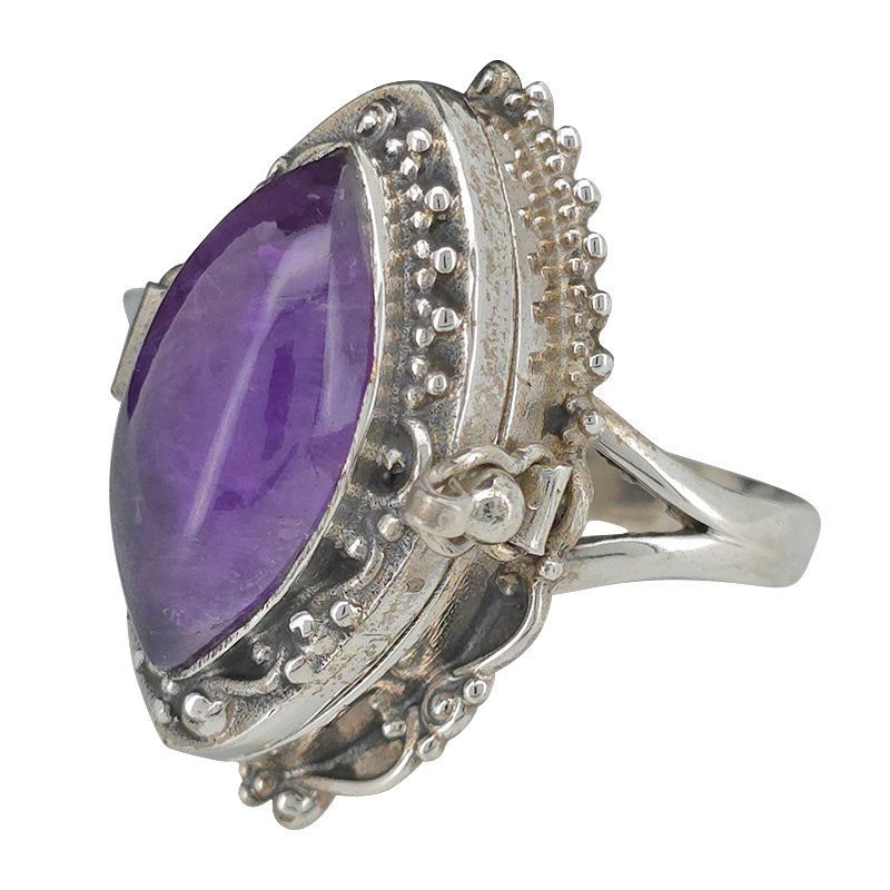 Tags: .915 sterling silver, Amethyst, gemstone ring, Locket Ring, Poison Ring, ring, Sterling silver, sterling silver ring, summer trends