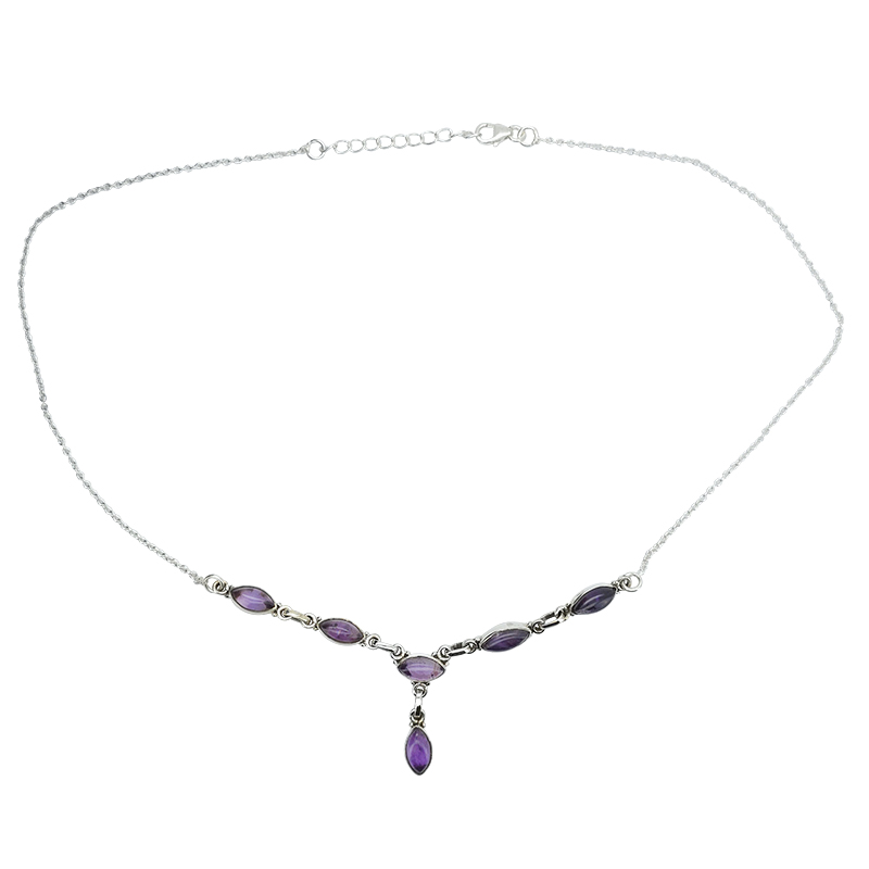 Amethyst Sterling Silver Necklace. Marquise-shaped gemstones are set in .925 sterling silver.