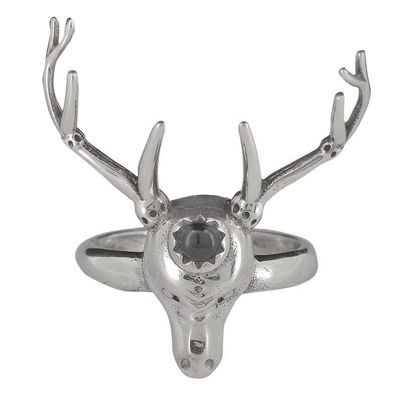 Black Onyx Sterling Silver Deer/Stag Head Ring