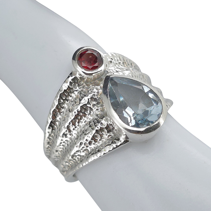 Tags: Blue Topaz, Faceted, faceted topaz, ring, Sterling silver