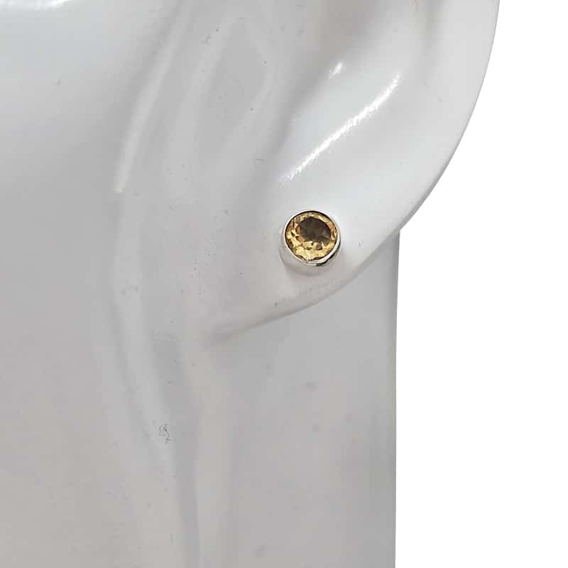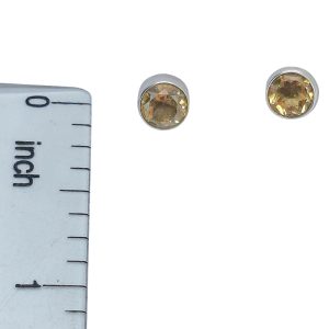 Faceted Citrine Sterling Silver Stud Earrings. Round-shaped citrine stones are set in .925 sterling silver.