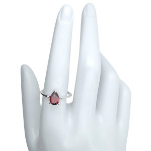 Faceted Garnet Sterling Silver Ring. A teardrop-shaped garnet stone is set in .925 sterling silver. Features a thin sterling silver band.