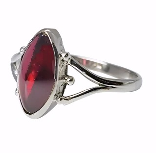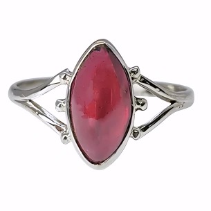 Garnet Sterling Silver Ring. The marquise-shaped garnet stone is set in .925 sterling silver.