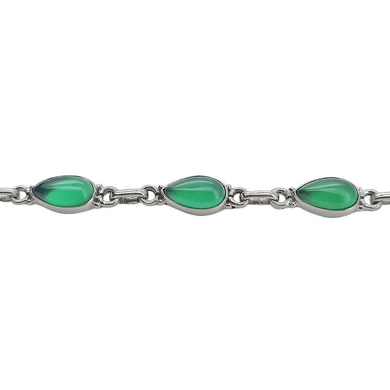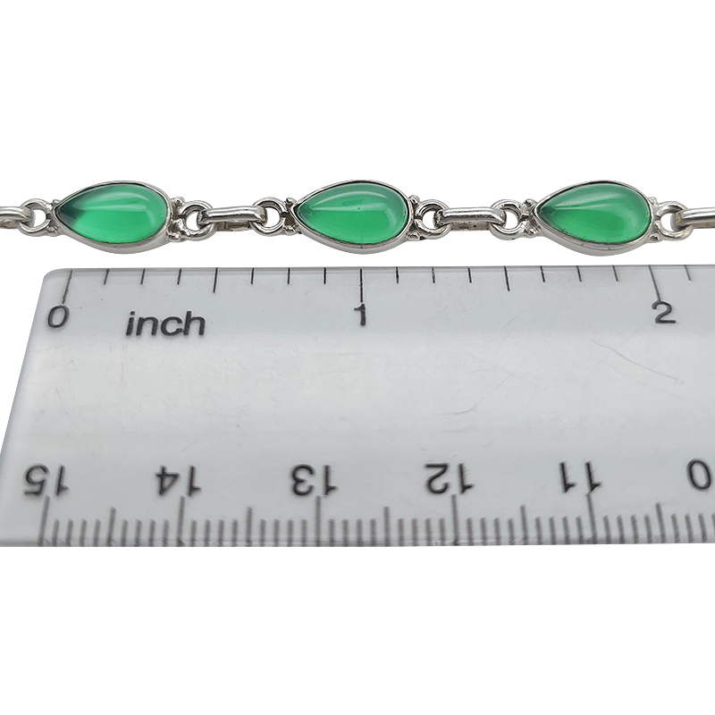 Classic Green Onyx Link Bracelet. Teardrop-shaped green onyx stones are set in .925 sterling silver. Bracelet measures 6 inches in length.