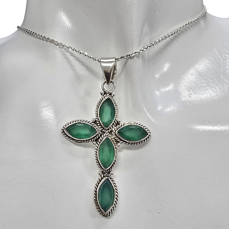Tags: Cross, Faceted, gemstone, Green Onyx, Sterling silver