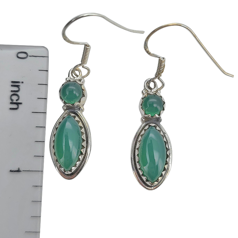 Green Onyx Sterling Silver Earrings On Hooks. Marquise and round-shaped gemstones set in .925 sterling silver. Gemstone earrings.