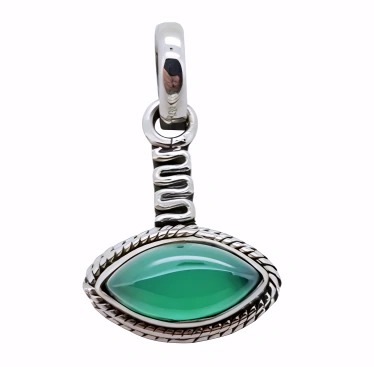 Green onyx sterling silver pendant. Marquise-shaped green onyx stone is set in .925 sterling silver.
