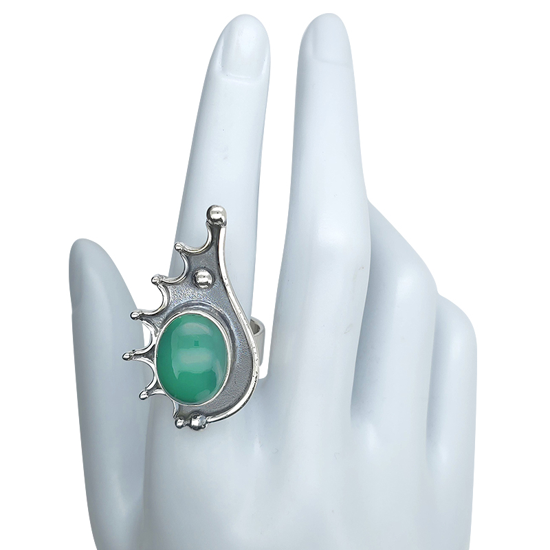 Green Onyx Sterling Silver Porcupine Ring. Oval-shaped gemstone set in .925 sterling silver. Gemstone Ring.