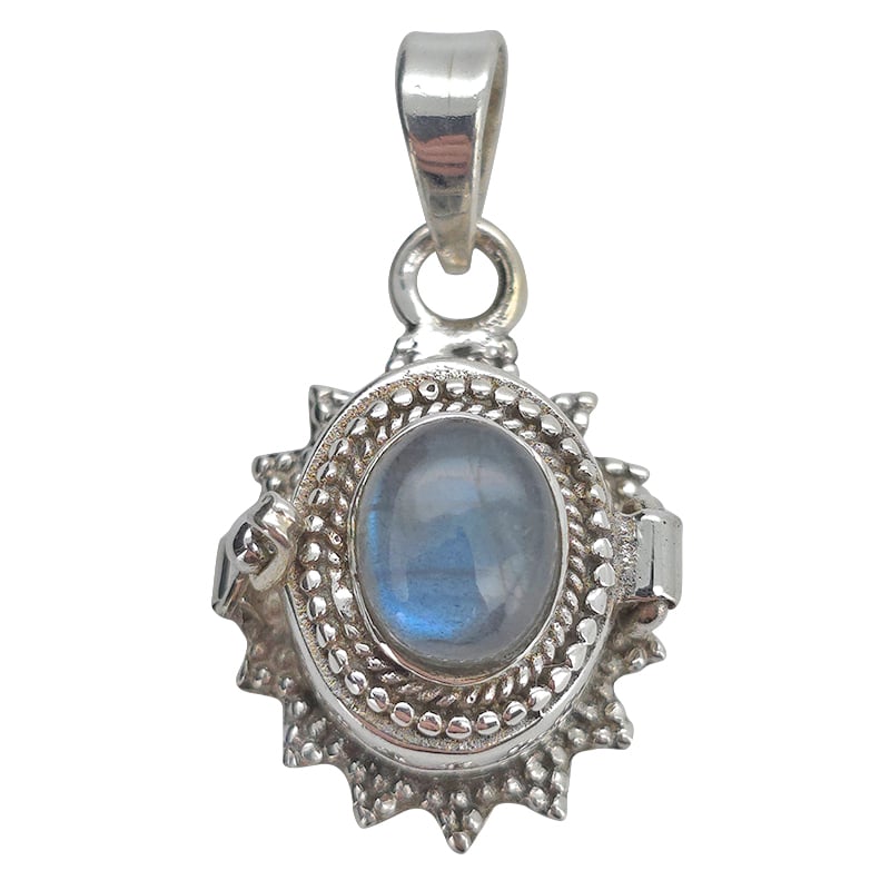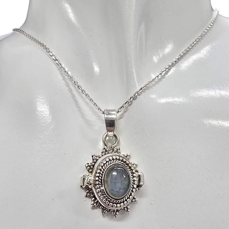 Labradorite Sterling Silver Locket Pendant. Oval-shaped gemstone set in .925 sterling silver. Gemstone pendant.