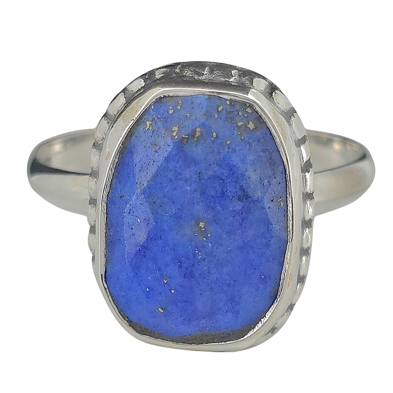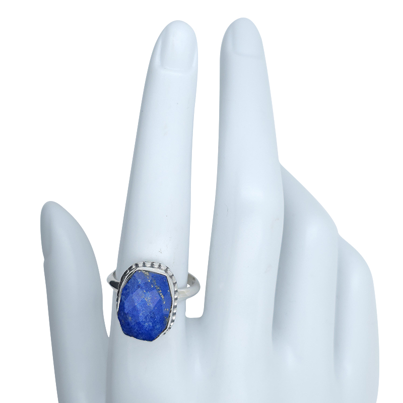 Faceted Lapis Freeform Ring. A faceted Lapis stone is set in .925 sterling silver. This is a handmade gemstone ring.