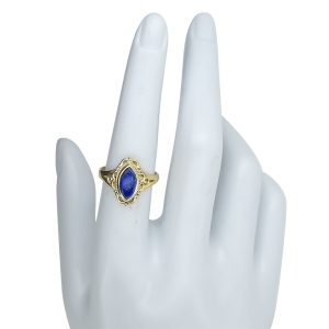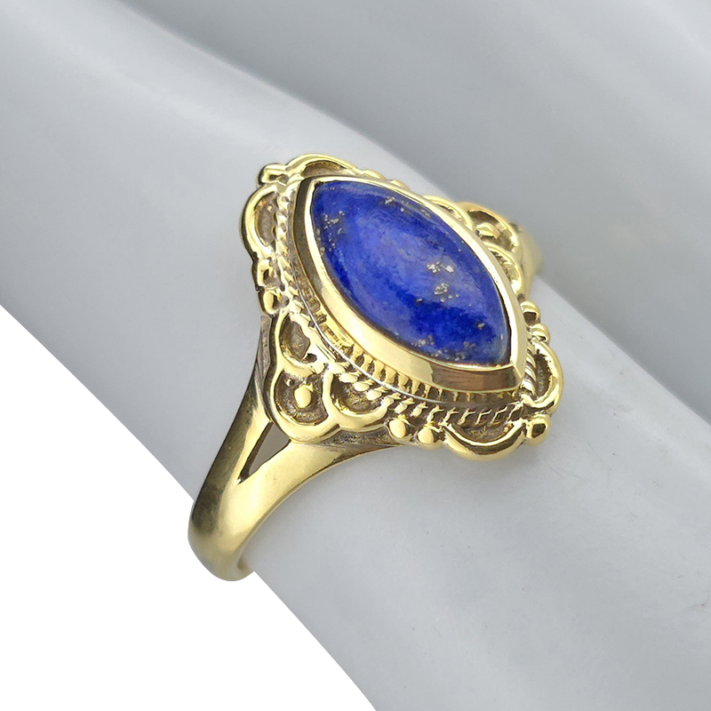 Lapis Gold Plated Silver Ring. Marquise-shaped gemstone set in .925 sterling silver. 14K Gold Plated. Gemstone ring.