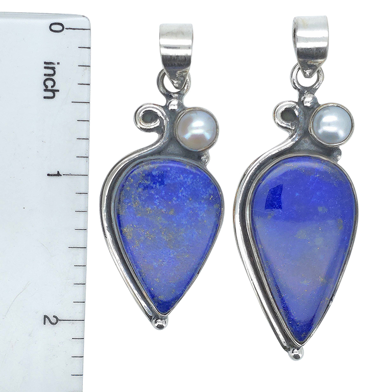 Lapis/Pearl Sterling Silver Pendant. Teardrop-shaped lapis and round-shaped pearl set are in .925 sterling silver. Gemstone pendant.