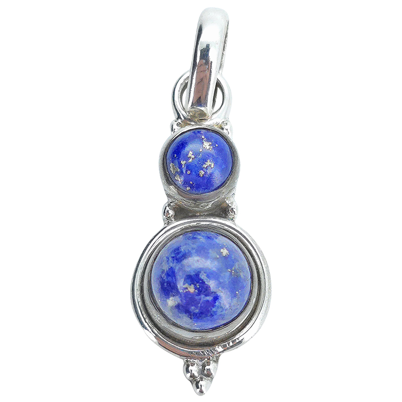 Lapis Sterling Silver Pendant. Round-shaped gemstones set in .925 sterling silver. Gemstone pendant.