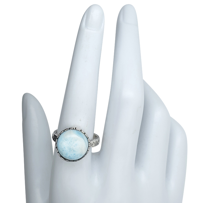 Larimar Sterling Silver Ring. Oval-shaped gemstone set in .925 sterling silver.