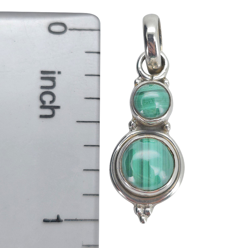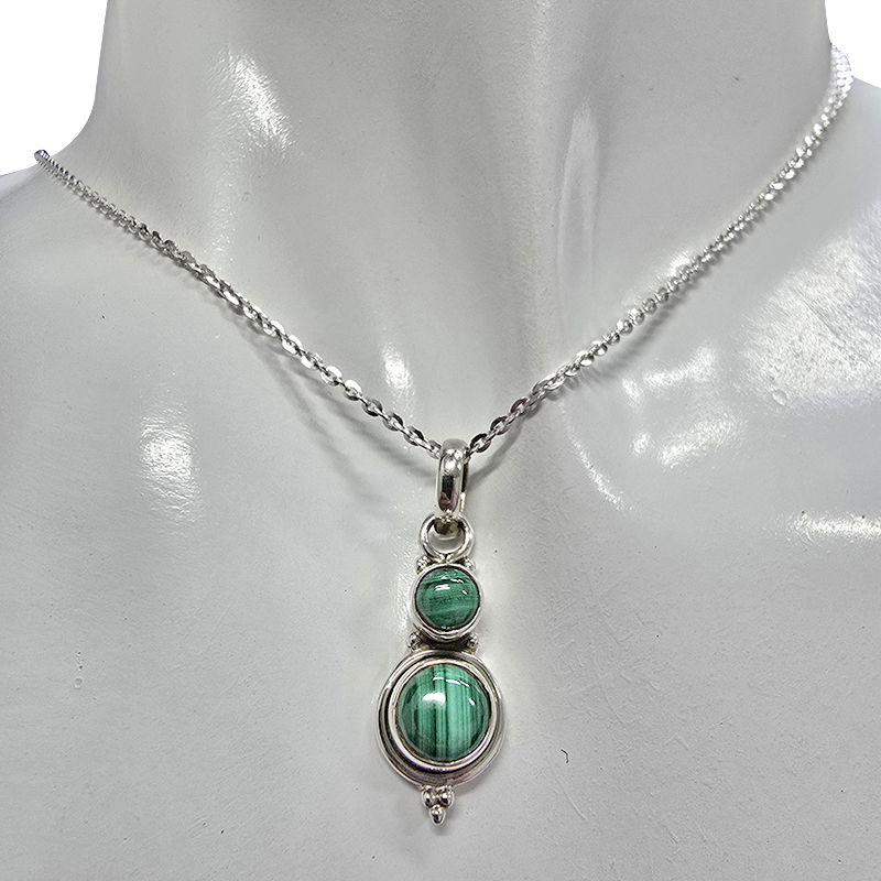 Malachite Sterling Silver Pendant. Round-shaped gemstones set in .925 sterling silver. Gemstone pendant.