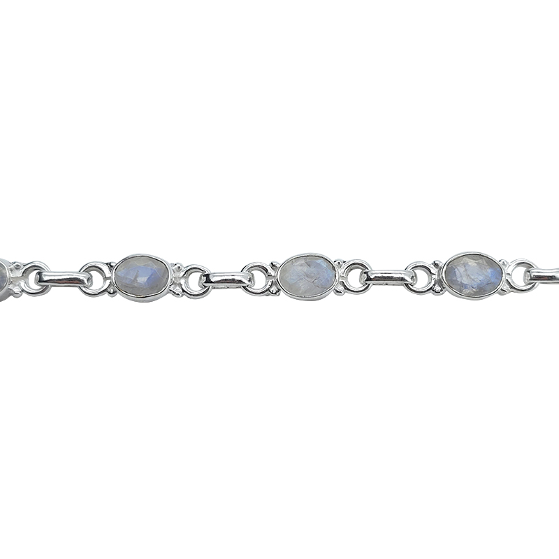 Faceted Moonstone Sterling Silver Link Bracelet. Oval-shaped gemstones set in .925 sterling silver. Gemstone bracelet.