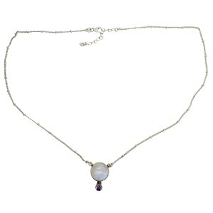 Moonstone/Amethyst Sterling Silver Necklace 20″