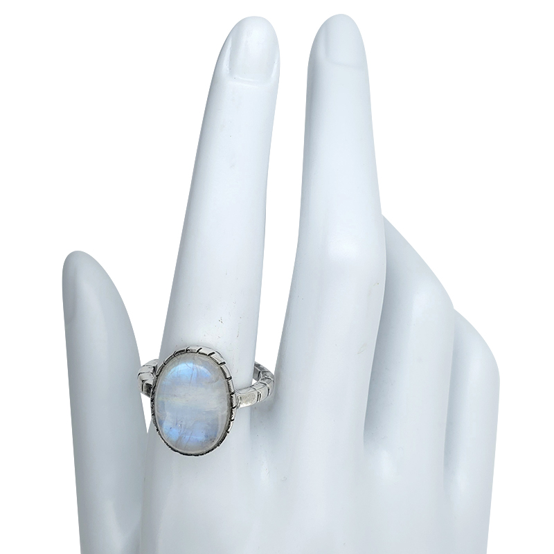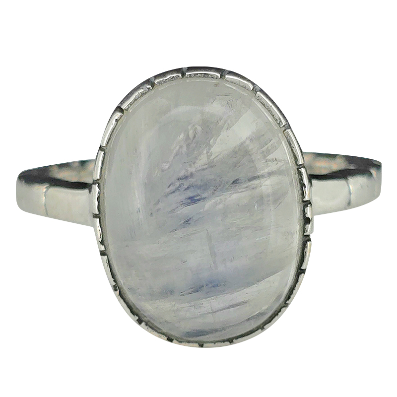 Moonstone Sterling Silver Ring. Oval-shaped gemstone set in .925 sterling silver.