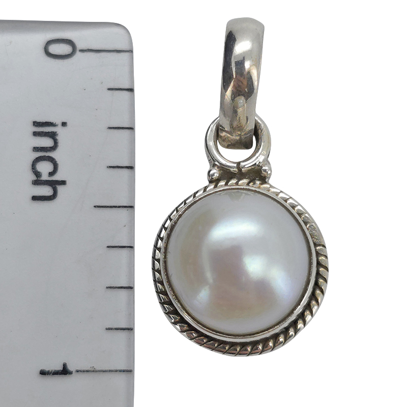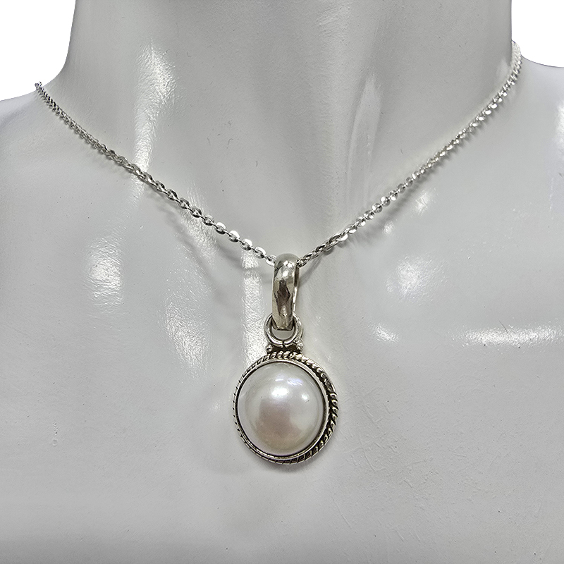 Pearl Sterling Silver Pendant. Round-shaped gemstone set in .925 sterling silver. Gemstone pendant.
