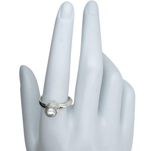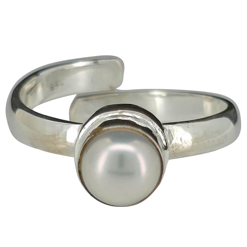 Pearl Sterling Silver Ring. Round-shaped gemstone set in .925 sterling silver. Gemstone adjustable ring, please choose the starting size.