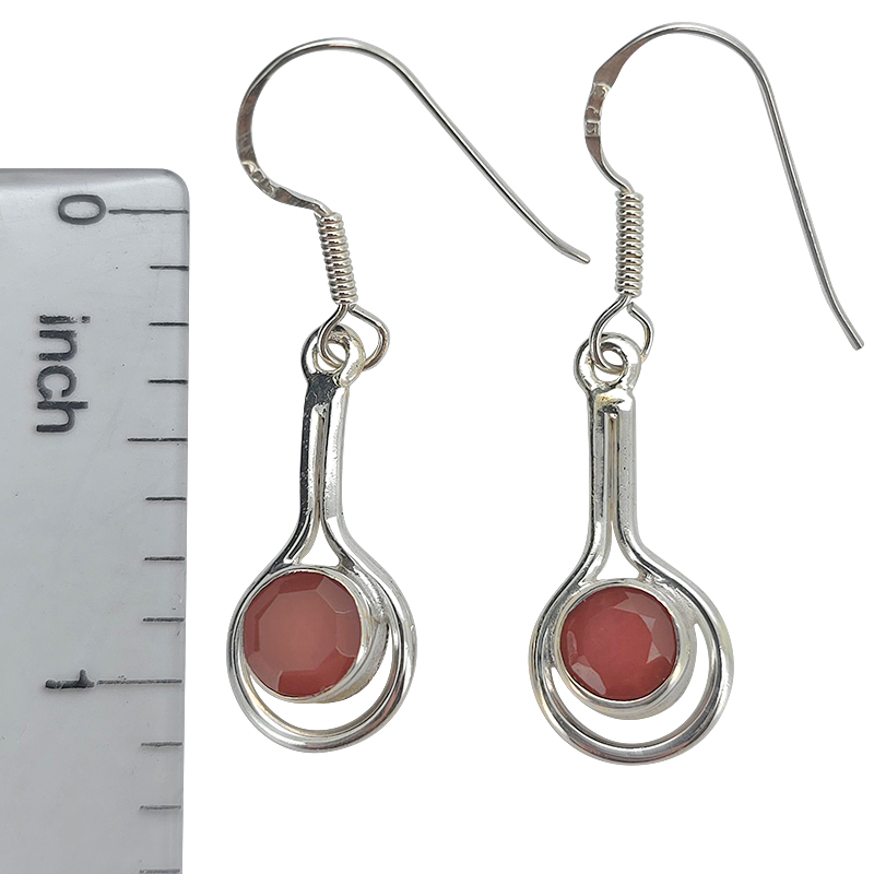 Faceted Red Onyx Sterling Silver Earrings On Hooks. Round-shaped gemstones set in .925 sterling silver. Gemstone earrings.