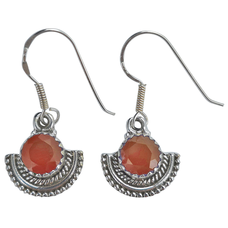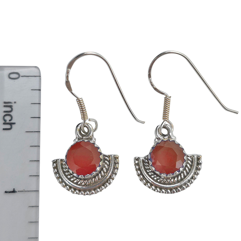 Faceted Red Onyx Sterling Silver Earrings On Hooks. Round-shaped gemstones are set in .925 sterling silver.