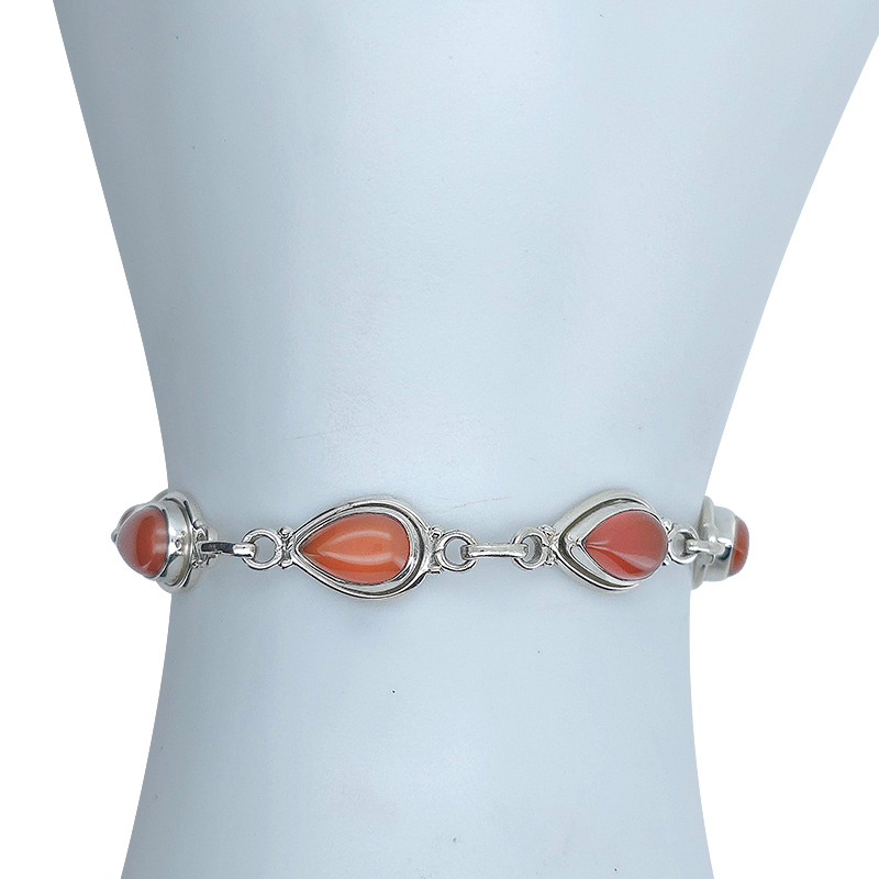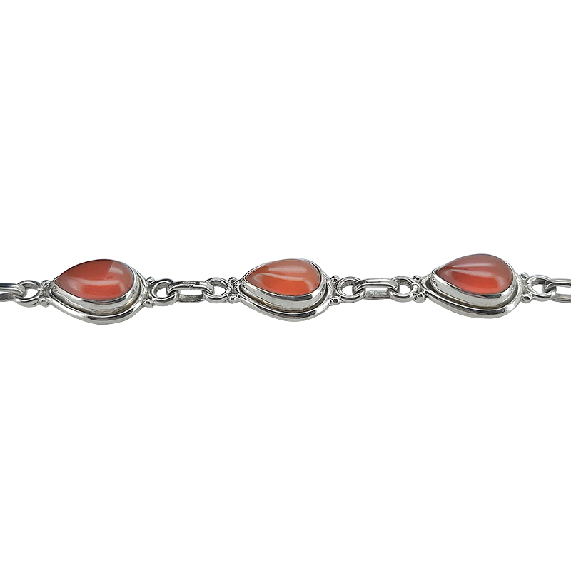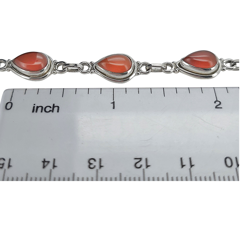 Red Onyx Sterling Silver Link Bracelet. Teardrop-shaped red onyx stones are set in .925 sterling silver. 6″ long bracelet.