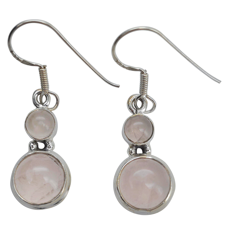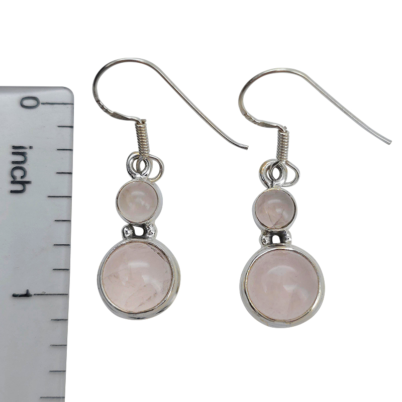 Rose Quartz Sterling Silver Earrings On Hooks. Round-shaped gemstones set in .925 sterling silver. Gemstone Earrings.