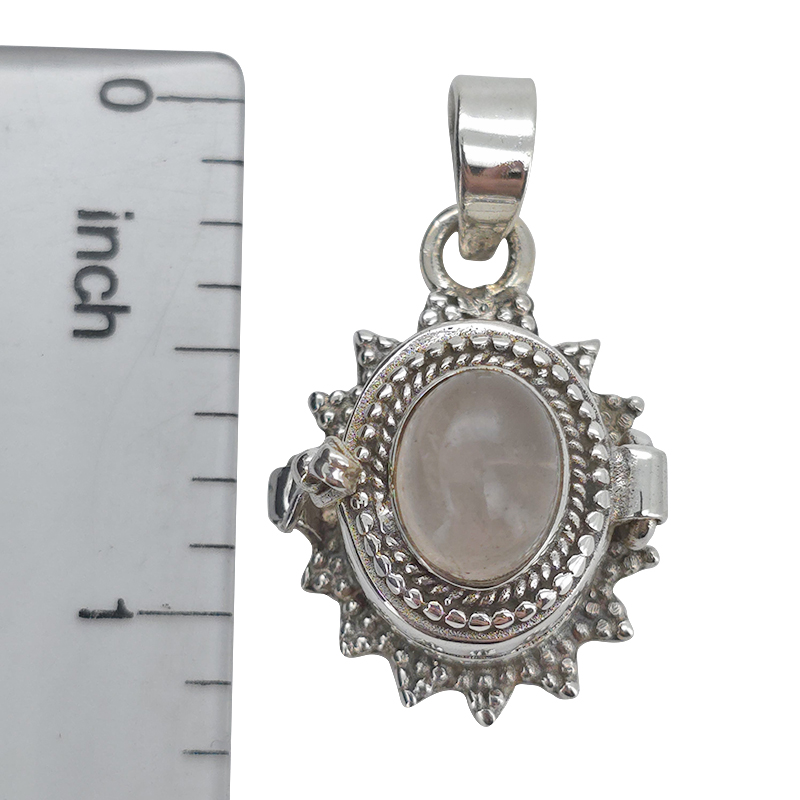 Rose Quartz Sterling Silver Locket Pendant. Oval-shaped gemstone set in .925 sterling silver. Gemstone pendant.