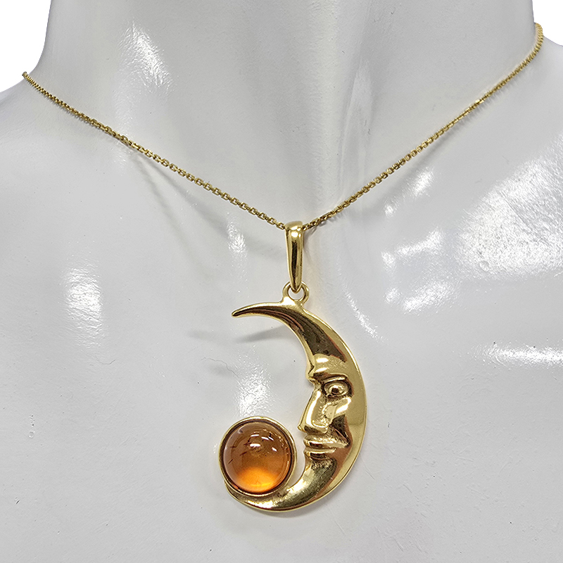 Tags: 14K Gold Plated, amber, Genuine Baltic amber, Halloween, halloween jewelry, Moon, pendant, Sterling silver