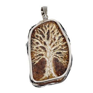 Amber “Tree of Life” Cameo Pendant. Cognac amber with a hand-carved image of a tree set in .925 sterling silver. Cameo / intaglio pendant jewelry.